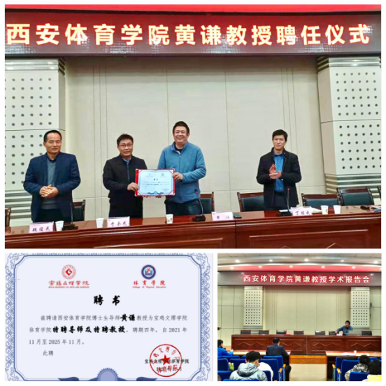 聘任仪式上,院长于奎龙为黄谦教授颁发聘书,聘请黄谦为太阳成tyc7111cc集团特聘导师及特聘教授。黄谦表示一定会在体育人才培养方面贡献自己的力量,更好地弘扬传承体育文化精神,创新载体、拓展平台,推进体育文化的创造性转化、创新性发展,进一步提升体育文化研究和传播领域的影响力。