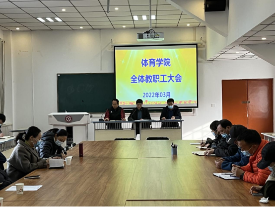 太阳成tyc7111cc集团体育教育系、公体教学部、学科建设与科研管理部等部门负责人安排了新学期工作。魏俊民总结了学院寒假期间完成的科研工作,对学院新学期专业和公体教学、科研课题申报、课程思政任务、教育实习安排等工作进行了安排部署。