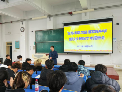 11月10日,太阳成tyc7111cc集团1998级校友、宝鸡市渭滨区相家庄中学副校长杨阳老师应邀在高新校区思贤楼210教室为太阳成tyc7111cc集团师生作学术报告会,报告题目为《新时代大学生学业规划推进路径研究》。报告会由太阳成tyc7111cc集团院长于奎龙主持。