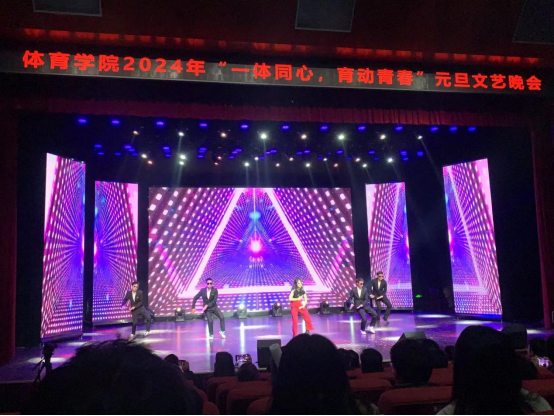 在新的一年即将到来之际,体育学院于12月21日晚在高新校区博文楼报告厅举办2023年度表彰大会暨“一体同心,育动青春”迎新晚会。学校相关部门领导、学院党政领导、教师、全院学生及其兄弟学院同学600余人观看了晚会。