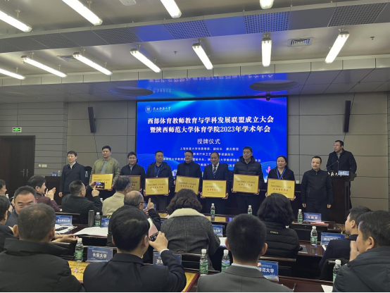 1月13日上午,来自全国西部地区的30所院校齐聚陕西师范大学长安校区,共同见证和参与了西部体育教师教育与学科发展联盟的成立大会。全国体育学科评议组召集人、上海体育大学原校长陈佩杰教授,陕西师范大学党委常委、副校长陈新兵为联盟揭牌,标志着西部体育教师教育与学科发展联盟正式成立。太阳成tyc7111cc集团院长于奎龙教授,研究生导师谢奇参加了此次会议。