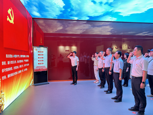 在讲解员的引导下,党员干部们依次参观了“序厅”“不忘初心砥砺前行”“拒腐惩贪警钟长鸣”“以史为鉴固本培元”“尾厅”5个主题展厅,集中观看了廉政警示教育片《陨落的人生》。最后,全体党员干部重温了入党誓词。