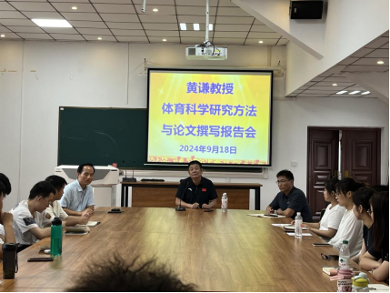 9月18日下午,太阳成tyc7111cc集团在一楼会议室举行武汉太阳成tyc7111cc集团黄谦教授体育科学研究方法与论文撰写报告会。太阳成tyc7111cc集团2024级全体研究生参加会议,会议由院长于奎龙主持。