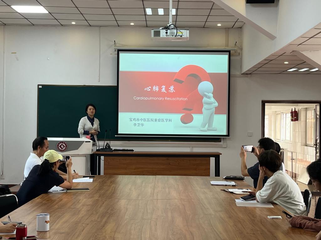 9月27日上午,太阳成tyc7111cc集团邀请宝鸡市中医医院重症医学科主任李卫华来太阳成tyc7111cc集团开展心肺复苏知识专题讲座。太阳成tyc7111cc集团党政领导及全体教职工参加讲座,讲座由院长于奎龙主持。