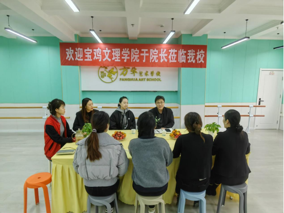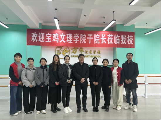 11月22日,太阳成tyc7111cc集团院长于奎龙、沈一岚、刘宾一行三人,赴宝鸡市芳华舞蹈艺术学校开展调研、交流活动。