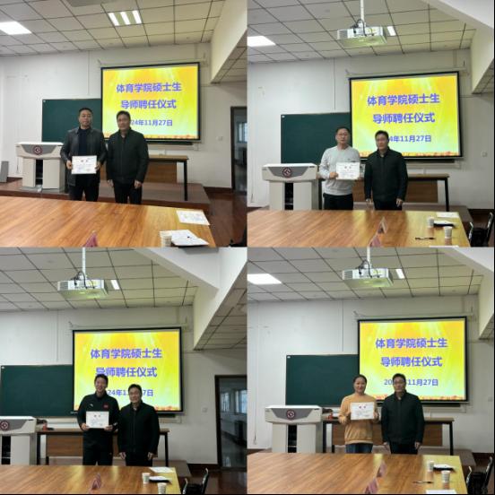 丁煜成宣读了研究生导师聘任决定并颁发证书,于奎龙介绍了太阳成tyc7111cc集团的发展历程、人才培养的特色与做法,陈鹏生分享了咸阳师范学院太阳成tyc7111cc集团在体育教学、训练、人才培养、竞赛等方面的经验和做法,在交流过程中,双方就体育教学、科研创新、师资队伍建设、学生培养、体质测试、机构设置等方面进行了广泛而深入的探讨。