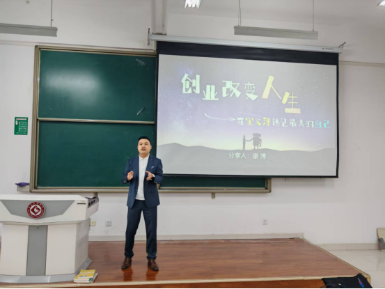 康博结合亲身经历讲述了自己从学校毕业后奋斗的经历和创业的故事。在报告会中,他分享了自己工作实践中的感悟,如“以问题为导向不断地完善自己”、“以创造性思维看待大学期间的学习”、“每一份私下的努力都有倍增的回报”等。