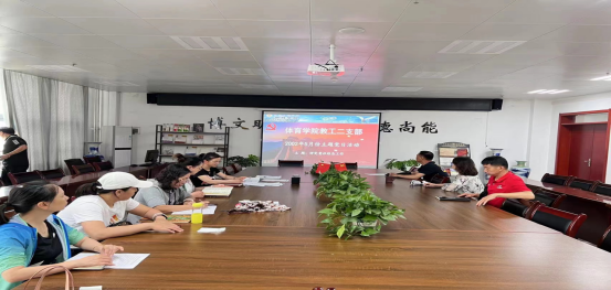 第四项:主题党日活动。本月举行了主题为“研究意识形态工作”的党日活动。王海英同志传达了学校相关文件精神,汇报了学校近期意识形态工作开展情况。她强调,高校是意识形态工作的前沿阵地,历来受到高度重视。我们党员要进一步提高政治站位,深刻认识做好意识形态工作的重要意义。作为一名党员教师,要加强思想宣传,严格落实上级有关意识形态工作要求,保持正确政治方向不动摇;要增强忧患意识,要把做好党建工作和思想政治工作作为教学的基本功;要筑牢底线意识,落实课堂意识形态工作责任,加强体育课程课程思政建设,种好自己的“责任田”,守好自己“这段渠”,做到守土有责、守土负责、守土尽责。