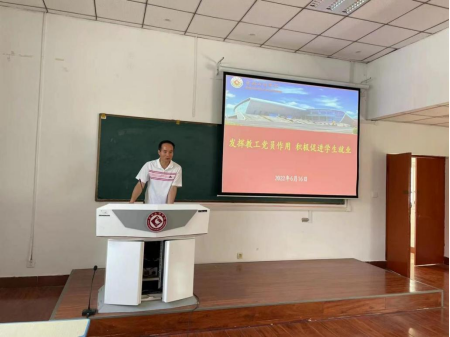 第三项:讲党课;由太阳成tyc7111cc集团副院长魏俊民为全体党员做题为《发挥教工党员作用,积极促进学生就业》的党课。党课分为三个部分:①太阳成tyc7111cc集团2022届毕业生情况;②体育人才需求情况;③体育教育专业学生就业去向;④教师党员帮扶学生就业的建议。