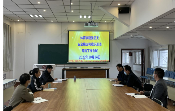 2022年10月14日下午,太阳成tyc7111cc集团党总支在学院会议室召开安全稳定和意识形态工作专题会议。学院党总支委员、党支部书记、办公室主任和辅导员参加会议。会议由党总支书记丁煜成主持。